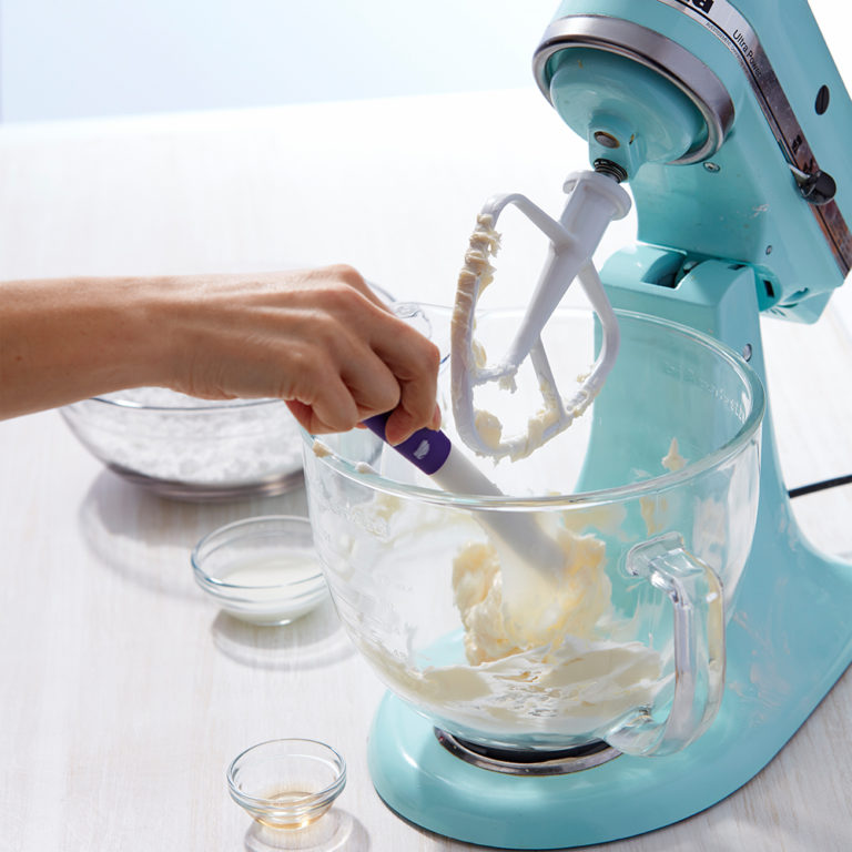- In large bowl, beat shortening and butter with electric mixer with a paddle attachment (beaters for hand mixers) on medium speed until light and fluffy.